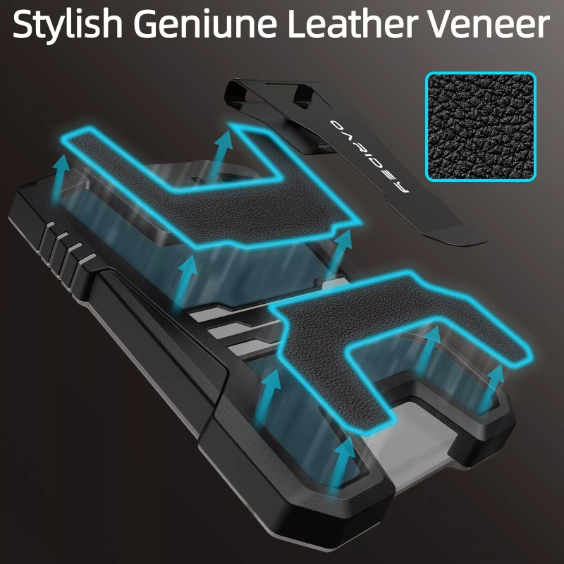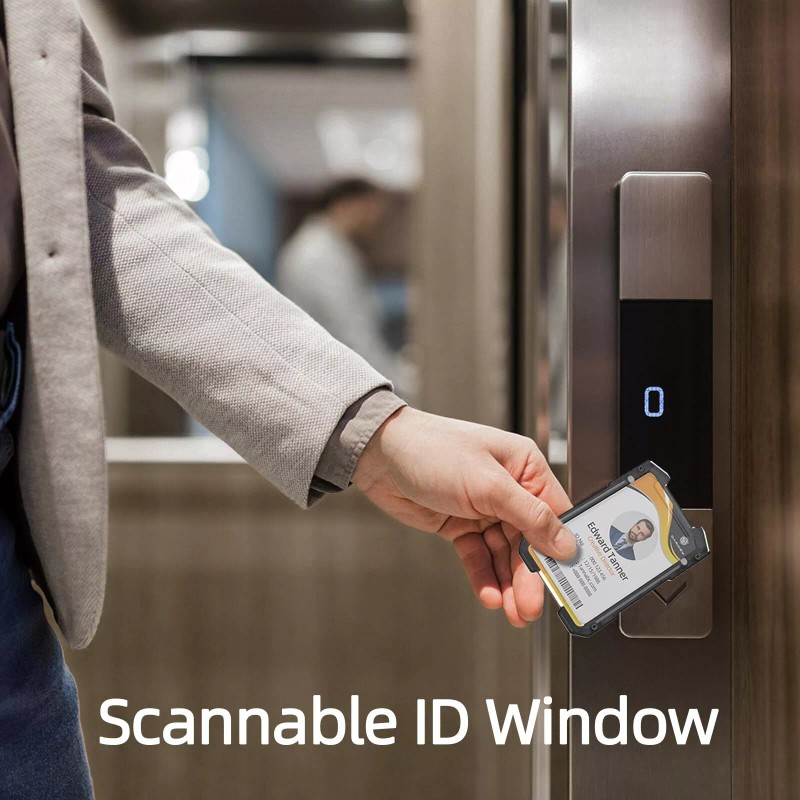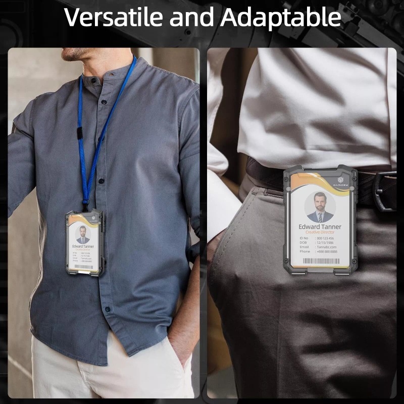 【Stylish Veneer Design】- This heavy-duty id holders for badges boasts a cool and fashionable appearance. It even incorporates a carbon fiber plate on the back, adding to its aesthetic appeal and durability.