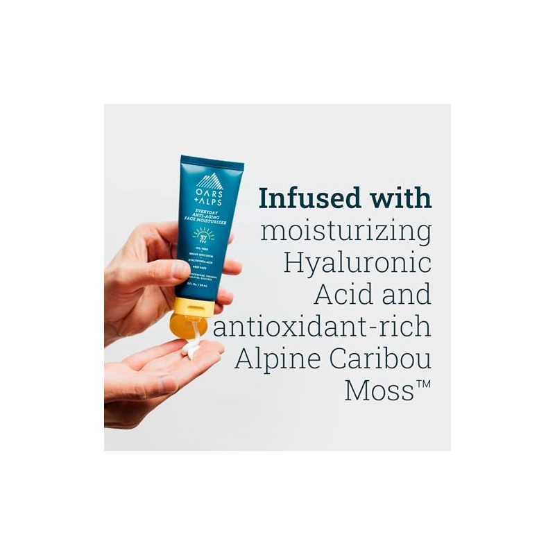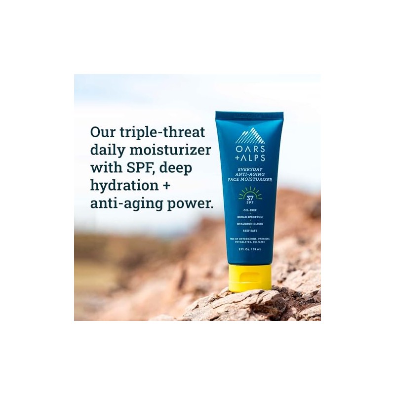 Oars + Alps Oars + Alps SPF 37 Sunscreen and Everyday Anti Aging Face Moisturizer, Infused with Hyaluronic Acid, Vitamin E and Vitamin B5, TSA Friendly, 2 Fl Oz