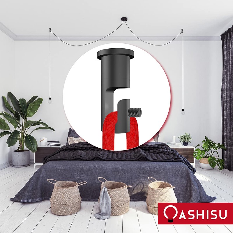 OASHISU Pack of 3 Wall and Ceiling Pins Surface-Mounted Cable Holder for Lamp Textile Cable Holder as Ceiling Mounting Cable Holders Wall Mounts Ceiling Mounts DIY with Screws and Dowels Black
