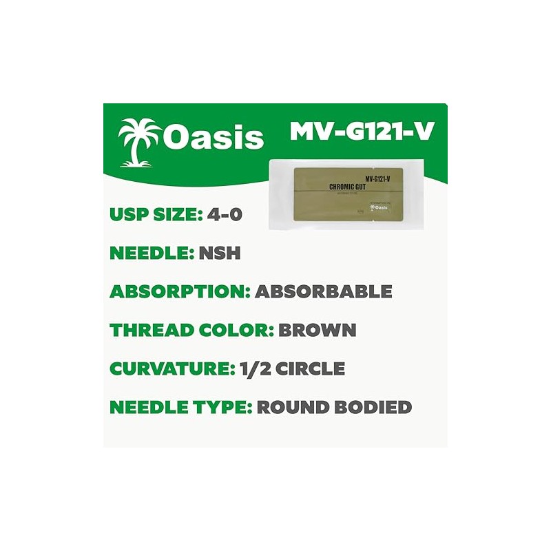 Oasis Chromic Gut Suture, Size 4-0, with NSH Needle, 12 Count, Veterinary Use