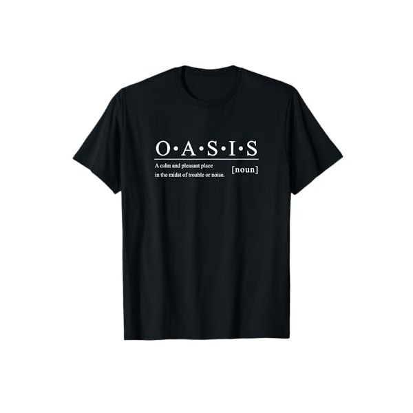 - This sleek “OASIS” definition tee brings calm to chaos - just like a certain legendary UK sound once did. With clean typography and a subtle nod to iconic British cool, it’s perfect for music lovers, deep thinkers, and seekers of everyday peace.