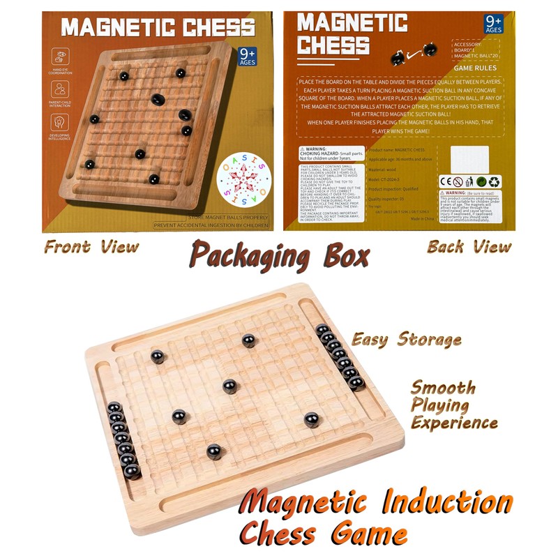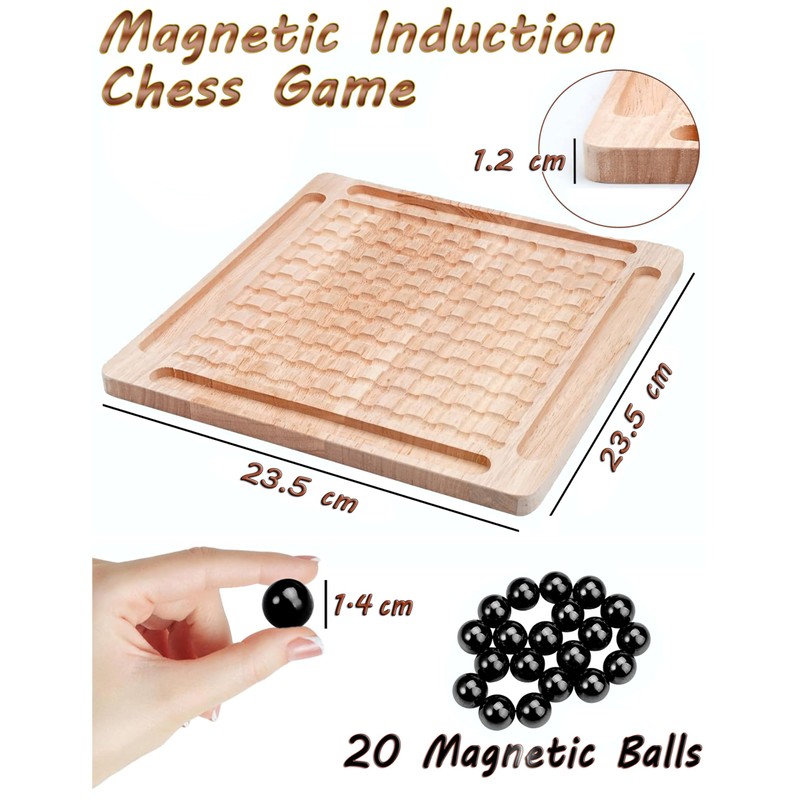 - High Quality Materials The game board is made of durable light wood and the 20 dark magnetic balls are made of polished metal.