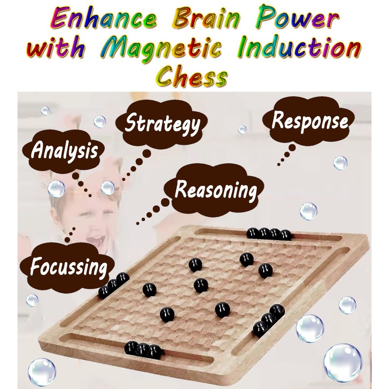 OASIS Magnetic Induction Chess Game - Bright High Quality Wood Magnetic Board and Strategy Game with 20 Magnetic Balls - Fun Skill Game - Promotes Strategic Thinking