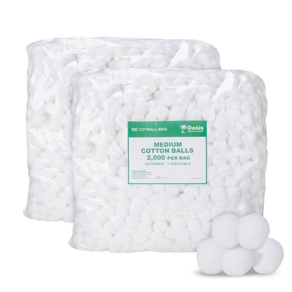 Oasis Medium Cotton Balls, 4000 Bulk Count, Soft & Absorbent Cotton Balls for First Aid, Medical, and Beauty