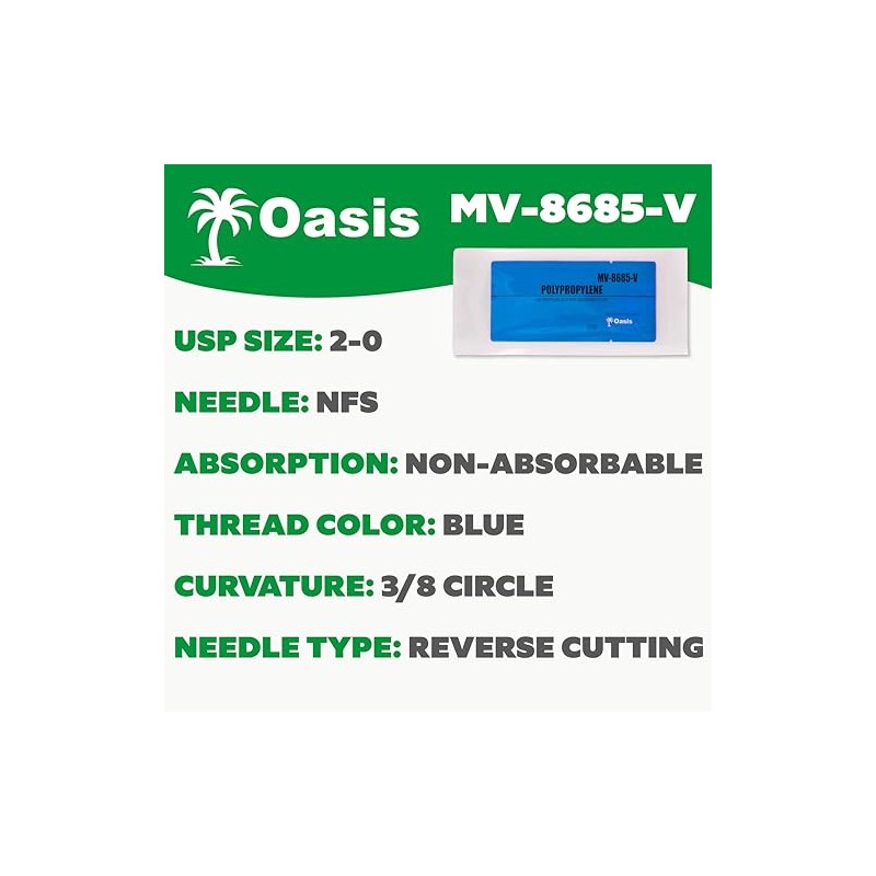 Oasis Polypropylene Surgical Suture, 2-0, (FS) 3/8 26mm Reverse Cutting Needle, 75cm, 12/Box, Veterinary Use