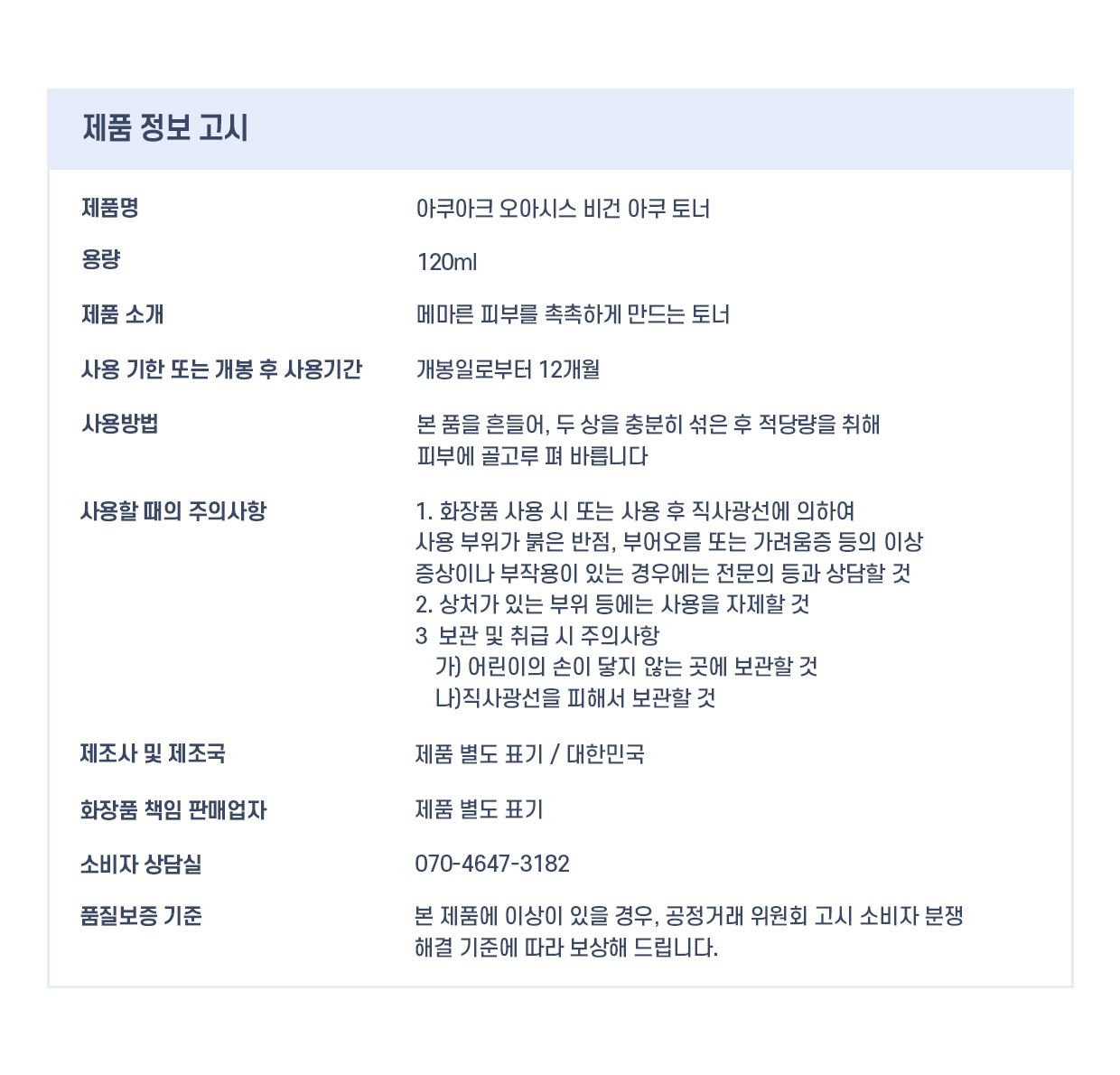 Oasis Vegan Aqua Toner 120ml / 오아시스 비건 아쿠 토너 120ml