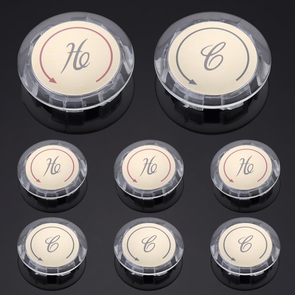 - Kit Contains: total 4 pairs of universal hot and cold index buttons with marked cursive hot and cold stamping, enough for you to replace dirty or damaged faucet handle buttons