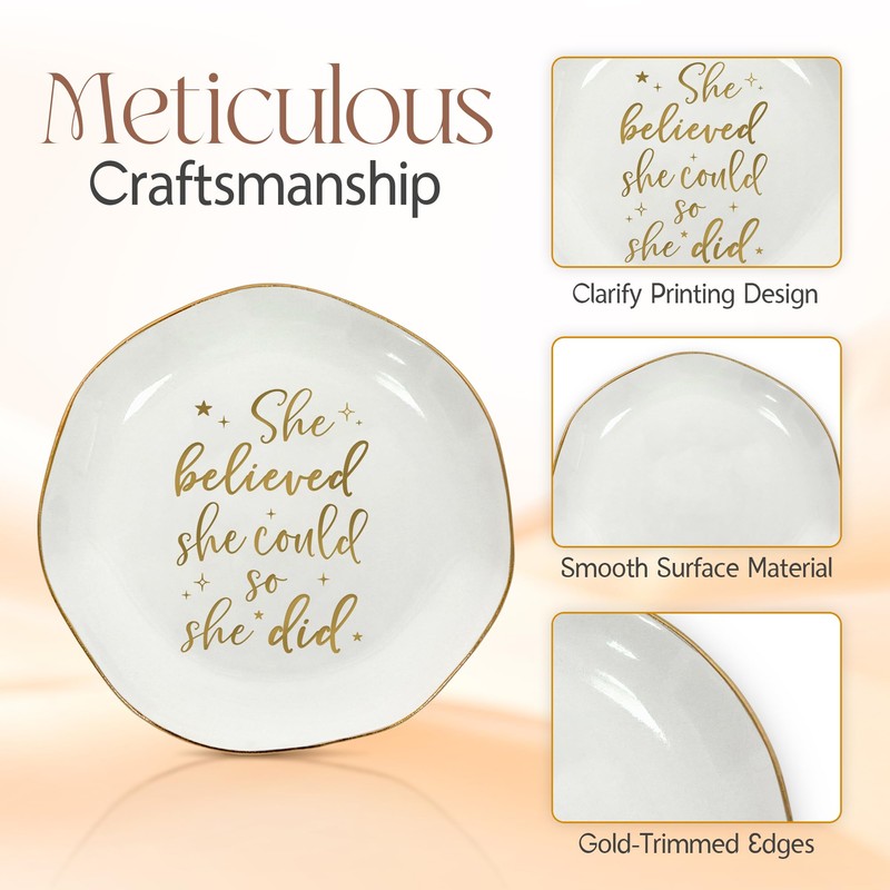 - GRADUATION GIFTS FOR WOMEN – A heartfelt jewelry tray that celebrates her strength! Paired with an elegant graduation card, this jewelry holder dish makes inspiration graduation gift ideas for your loved ones. Ideal as college graduation gifts for women, high school graduation gifts for her, and masters degree graduation gifts for girls!