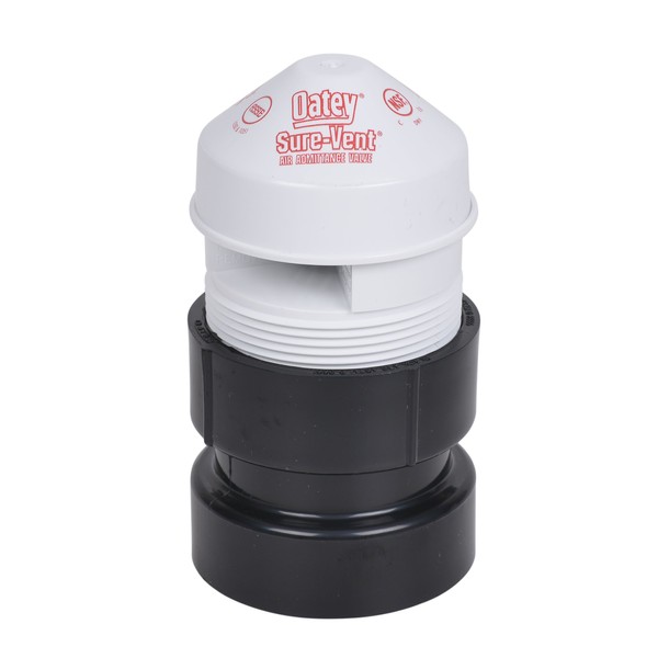 Oatey? Sure-Vent? 20 DFU Capacity Air Admittance Valve's one-way valve allows air to enter the plumbing drainage system when negative pressures develop in the piping system. The purpose of an Air Admittance Valve is to provide a method of allowing air to enter the plumbing drainage system without the use of a vent extended to open air and to prevent sewer gases from escaping into a building. An Air Admittance Valve is a one way valve designed to allow air to enter the plumbing drainage system when negative pressures develop in the piping system. The device shall close by gravity and seal the vent terminal at zero differential pressure (no flow conditions) and under positive internal pressures.