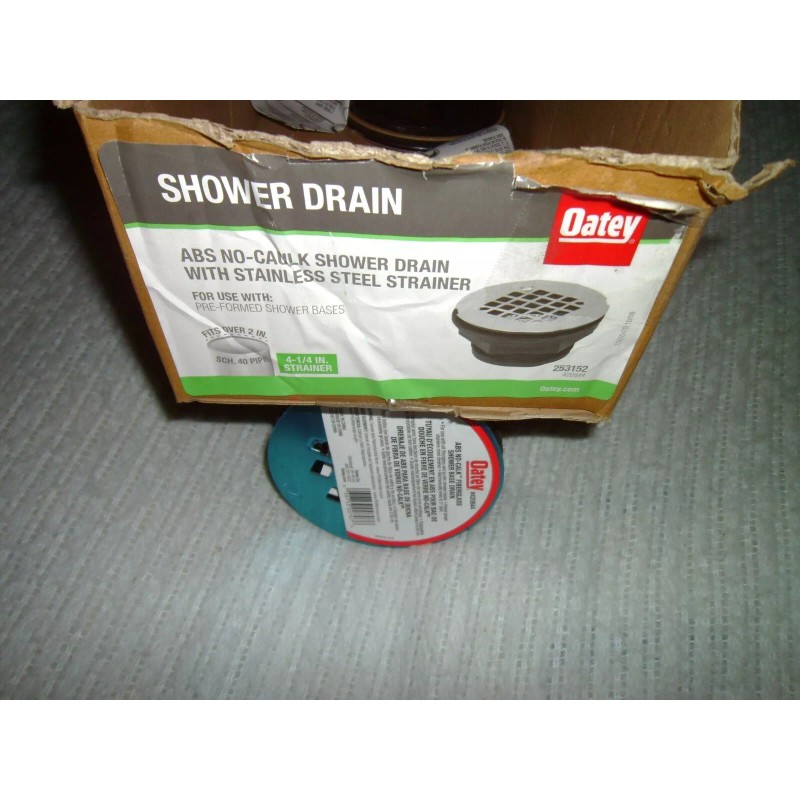 Oatey 420844 Shower Drain, 2 in, No-Caulk, Abs, Plastic Strainer, 2-Inch