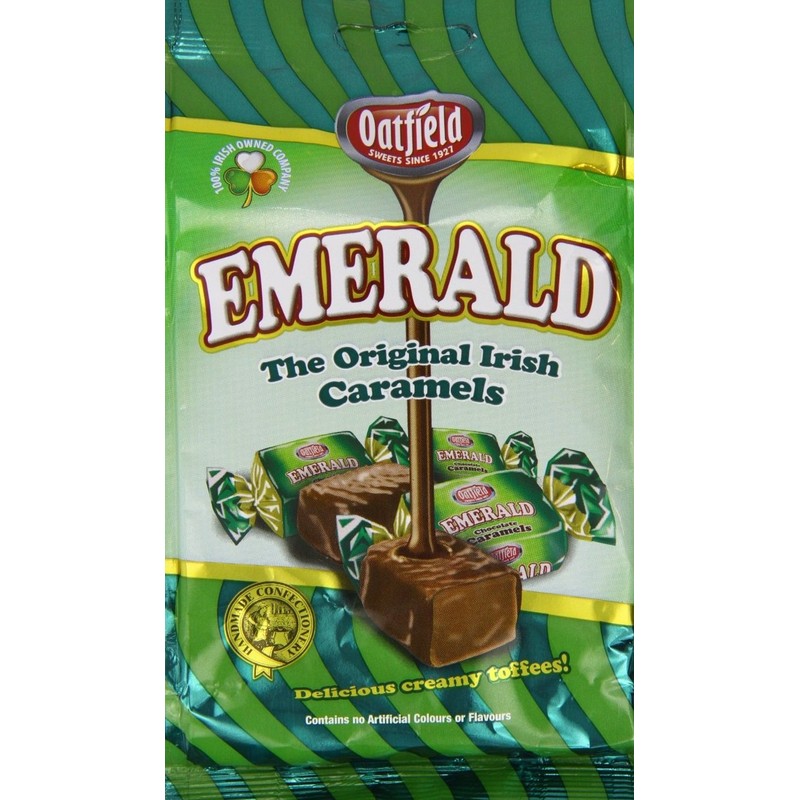 1 x SHARE SIZE BAG (APPROX 150G) OF OATFIELD EMERALD SWEETS THE ORIGINAL IRISH CARAMEL Oatfield have been making delicious sweets for over 85 years and these creamy toffees are one of the favourites all over the world! Contains no artificial colours or flavours. Enjoy a taste of Ireland yourself or send someone you love this delicious treat! Alternatively, chick out our online store and create your own gift pack of fantastic Irish products!