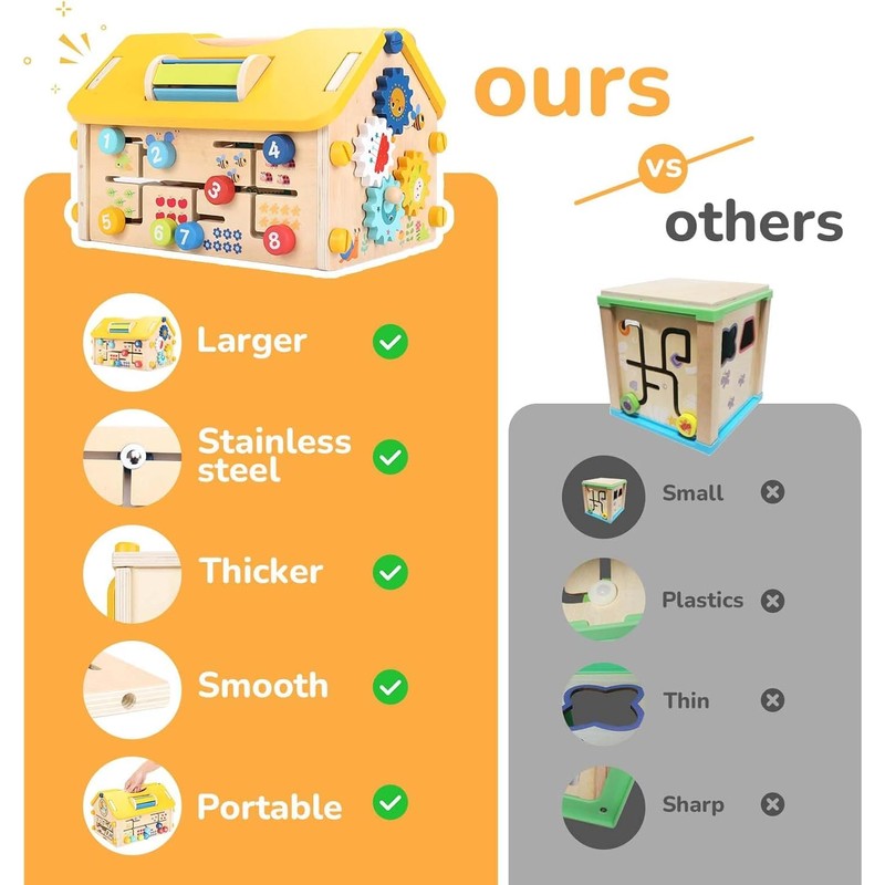 - oathx Wooden Activity Cube for Toddler Toys, 10-in-1 Montessori Toys for 3+ Years Old