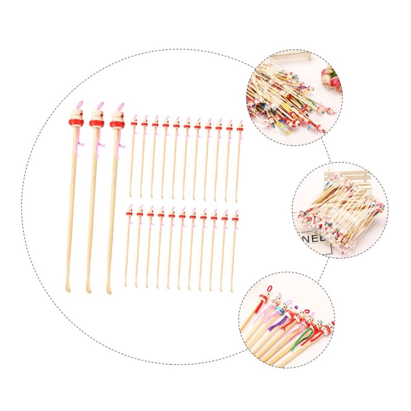 OATIPHO 100Pcs Bamboo Ear Wax Removal Spoons Natural Handcrafted Ear Cleaning Tools Random Color