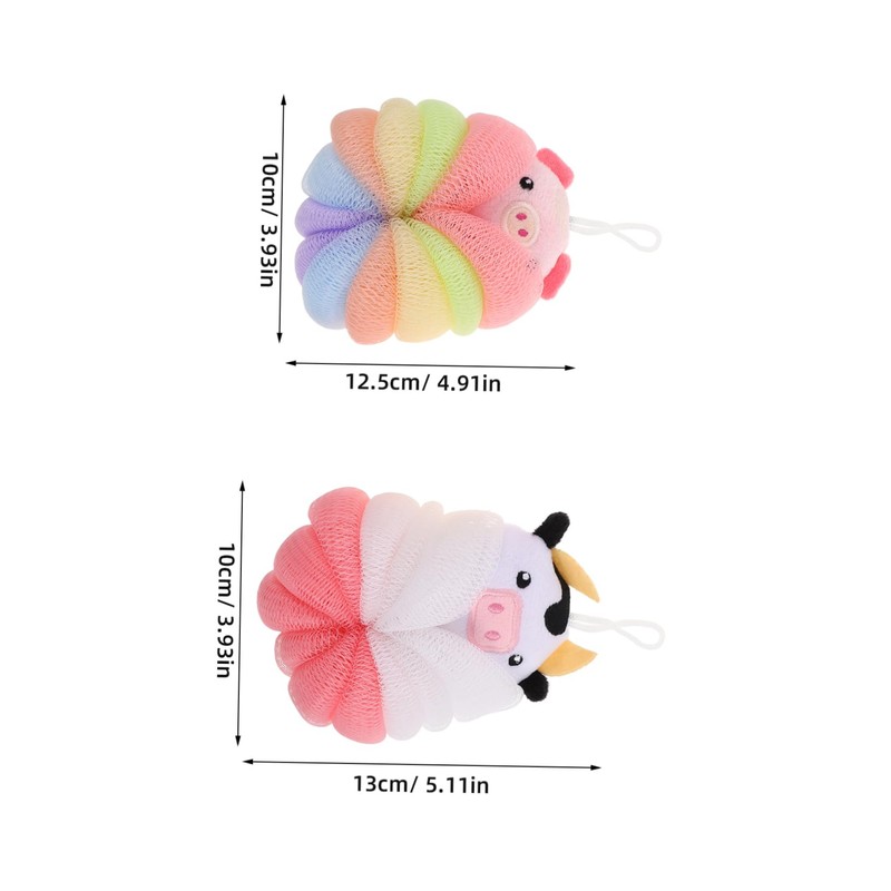OATIPHO 2pcs Bath Loofah Adorable Pig Cow Designs Large Mesh Shower Sponge for Easy Foaming Fun Bath for Quick Dry Clean Storage