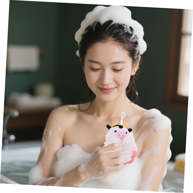 - Adorable pig and cow: bring joy to bath time with cute pig and cow designs, making it a fun and delightful experience for ,bath poufs,shower scrubber for