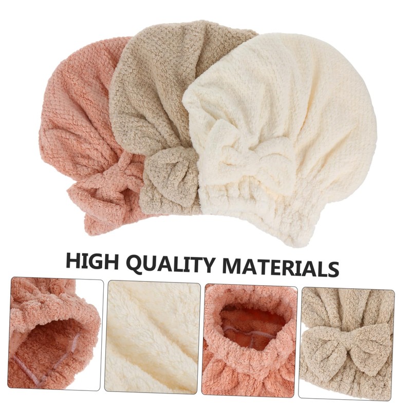 OATIPHO 3Pcs Absorbent Hair Towel Wrap Soft Coral Fleece Hair Drying Cap for Women Quick Dry for Home Travel Salon Gym Spa Pool White Beige Pink