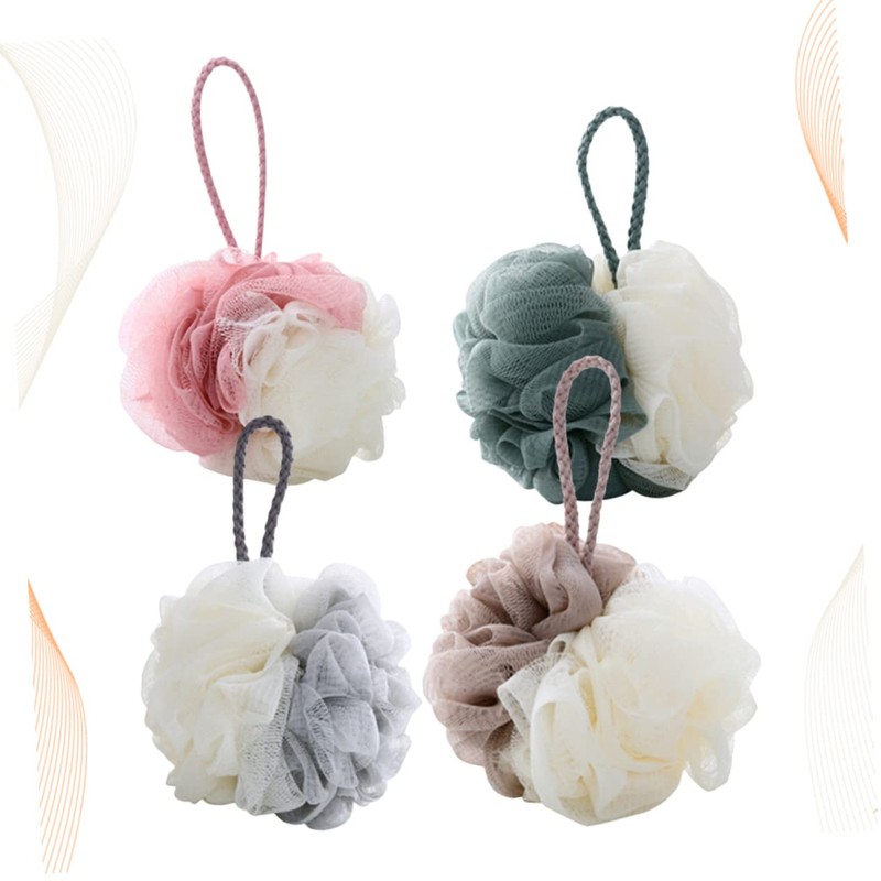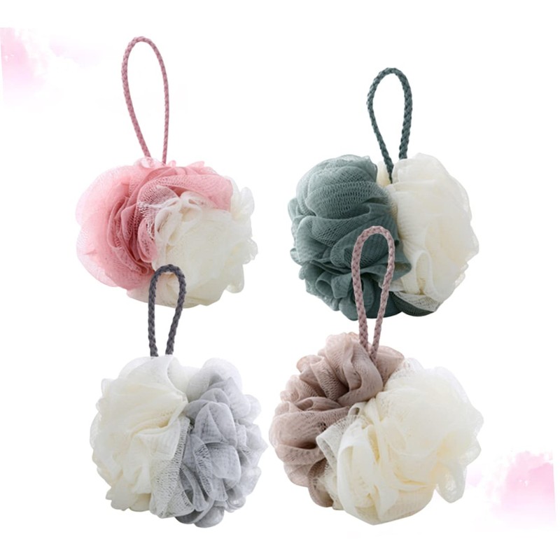 OATIPHO 4 Pcs Large Double Balls Mesh Sponge Shower Pouf for Exfoliating and Cleansing Skin for Home and Travel Use Pink Grey Brown Green