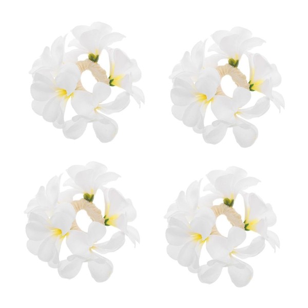 OATIPHO 4pcs Boho White Plumeria Hair Ties for Women Simulated Floral Elastic Scrunchies Beach Ponytail Holders for Wedding Vacation Party Hair Accessories