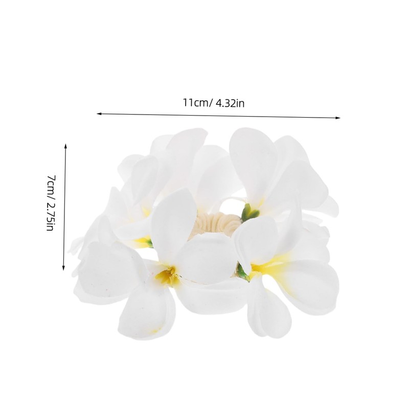 beach hair accessories Its elastic band ensures a secure fit, keeping your hair in place while enhancing your overall appearance.hawaiian hair ropes The white floral design complements any outfit, making it a versatile accessory for various occasions.beach hair ties This simulated plumeria hair scrunchie is suitable for adding a touch of elegance to your bridal hairstyle or beach vacation look