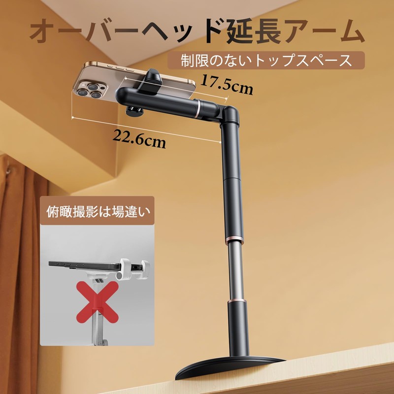 OATSBASF Smartphone Stand, Tabletop, Floor Stand, Portable Stand, 360 Degree Rotation, Height Adjustment, Foldable, Smartphone Arm Stand, Smartphone Stand, Sleeping Use, Desktop Photo Shooting