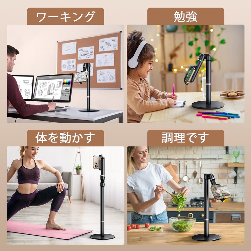 - Telescopic: The smartphone holder arm is designed to hold freely from 260mm to 620mm, compact and lightweight, removable so you can choose the height to suit your different needs such as yoga, live streaming, photography, study, office, or you can also remove the base to use it as a selfie stick
