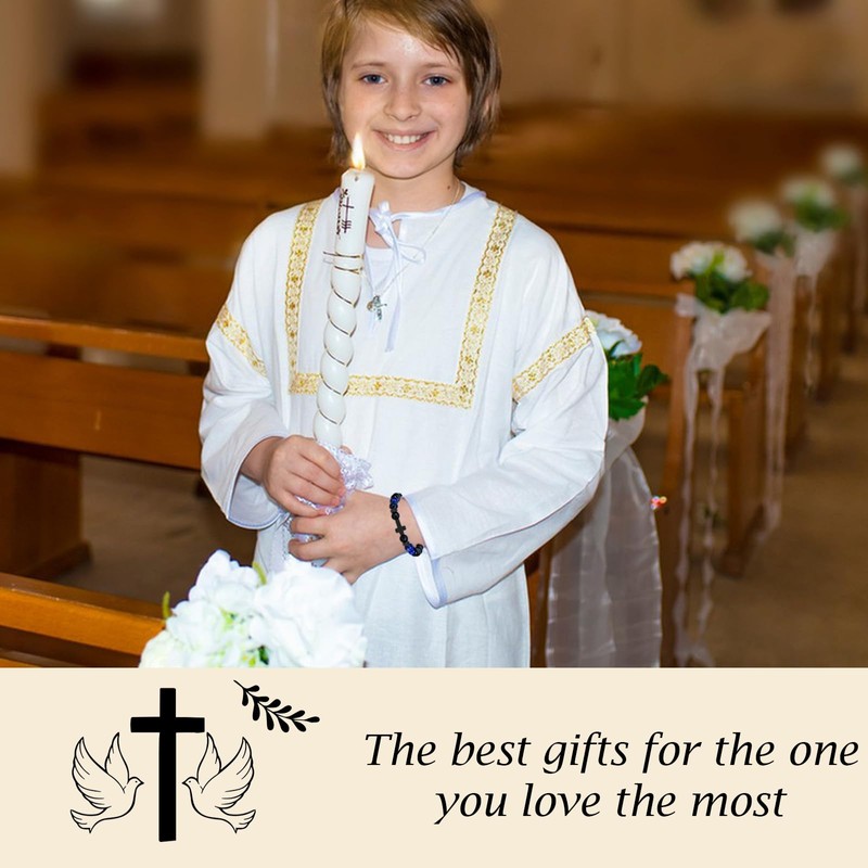 - Material: Gifts for catholic confirmation catholic bracelet are made of black obsidian, blue tiger eye and cross charm. Stylish and unique design make it be a must-have bracelet for him, bringing lucky and positive energies and keeping a good mood