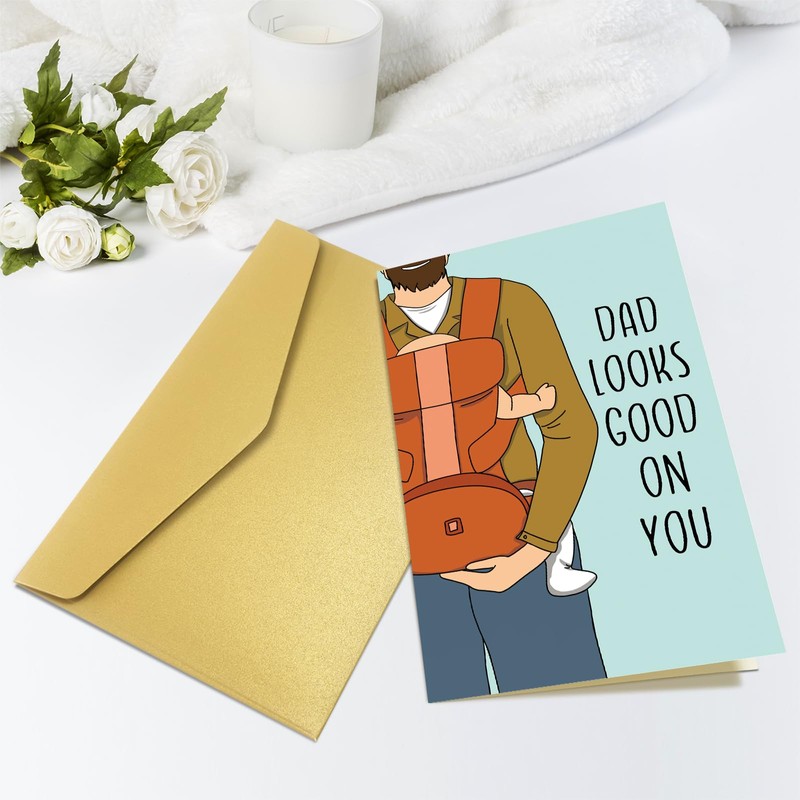 Obbyidk Funny New Dad Father's Day Card for Husband, Humorous First Time Dad Fathers Day Card from Wife, Dad Looks Good on You