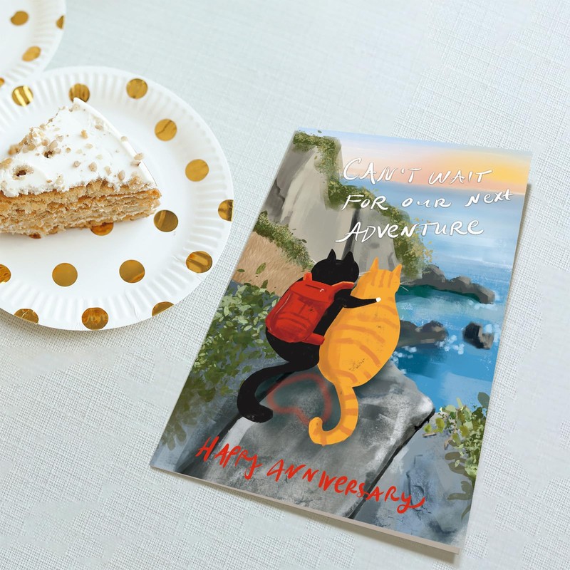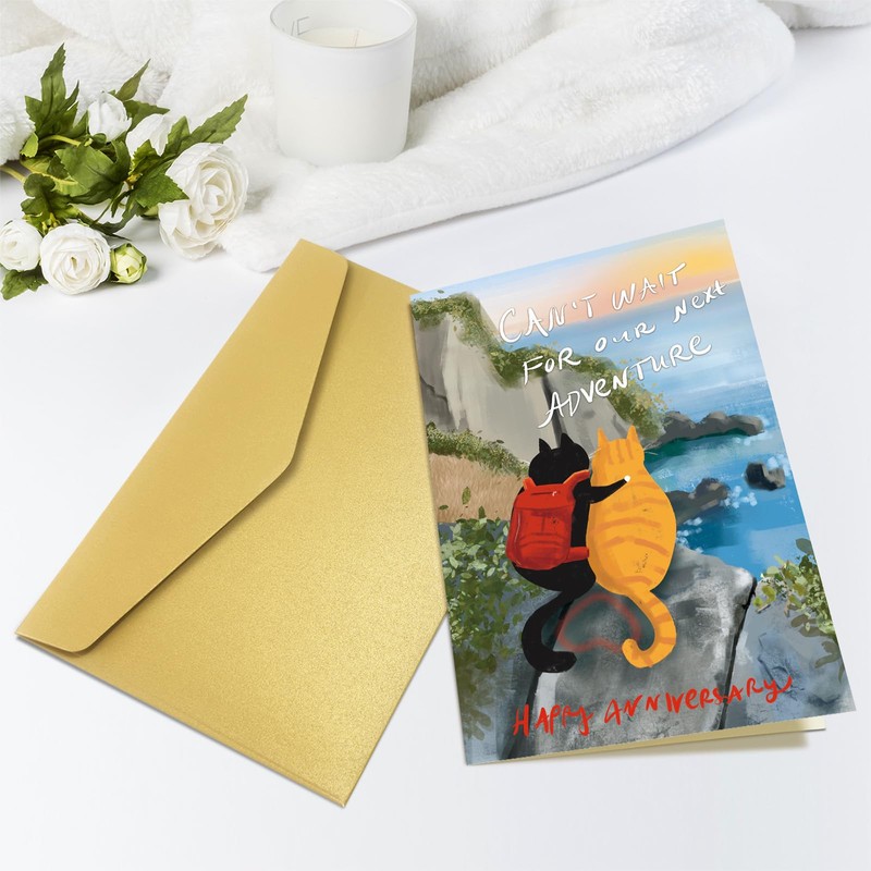 Obbyidk Romantic Cat Anniversary Card, Cute Anniversary Card for Cat Lover, Happy Anniversary Card, Can't Wait for Our Next Adventure