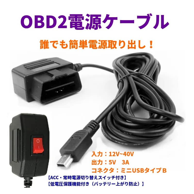 ドライブレコーダー用電源ケーブル カーナビ電源 OBD接続 電源スイッチ搭載24時間駐車監視 降圧ケーブル (mini-USBタイプ)