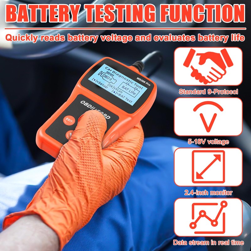 - Batterie- und Spannungsüberwachung: Motor Fehlercodeleser ermöglichen eine genaue Batteriediagnose und die Echtzeitüberwachung der Batteriespannungswellenform hilft Ihnen, den Zustand der Batterie zu überprüfen. Sie können auch umfassende Echtzeitdaten zur Fahrzeughistorieanalyse einsehen
