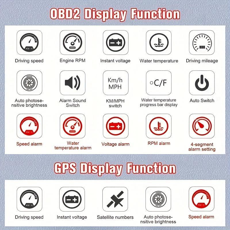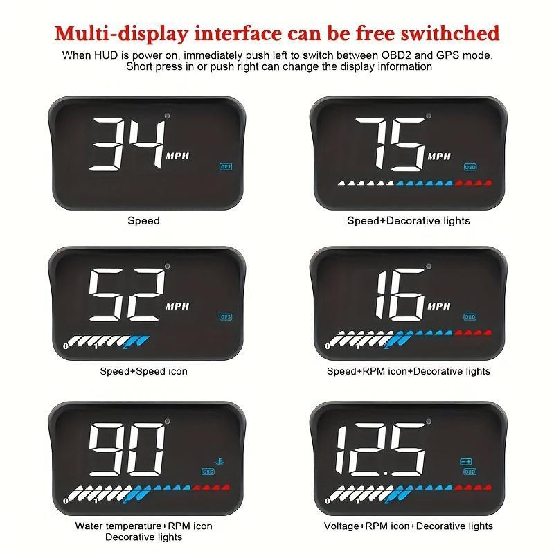 OBD2+GPS Car Projector, MPH KMH Automatic Hud Speedometer, Windshield Car Head Up Display Alarm Projector, Car Vehicle Electronics