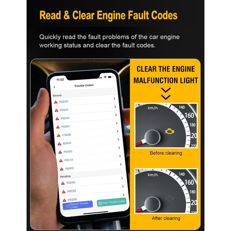 FlyroadUp OBD2 Scanner Bluetooth for iPhone iOS Android OBDII Diagnostic Scan Tool Code Reader Clear Error Code Car Performance Test Exclusive APP