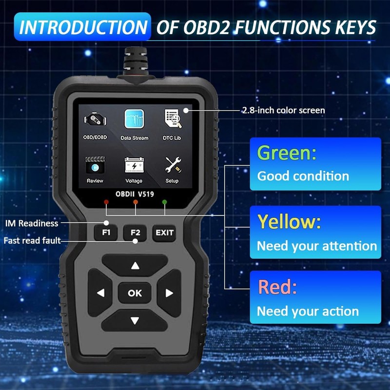 - 【Professional Diagnostic Power】Unlock comprehensive vehicle health insights with the V519 OBD2 Scanner. This advanced tool reads and clears engine fault codes (P0, P1, P2, P3 series) for cars, trucks, and SUVs, while displaying real-time battery voltage, RPM, and engine load. Perfect for DIYers and professionals, it eliminates guesswork by pinpointing issues like misfires, sensor failures, or emission system problems.