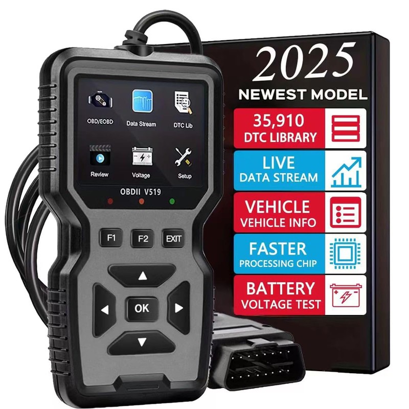 - 【Professional Diagnostic Power】Unlock comprehensive vehicle health insights with the V519 OBD2 Scanner. This advanced tool reads and clears engine fault codes (P0, P1, P2, P3 series) for cars, trucks, and SUVs, while displaying real-time battery voltage, RPM, and engine load. Perfect for DIYers and professionals, it eliminates guesswork by pinpointing issues like misfires, sensor failures, or emission system problems.