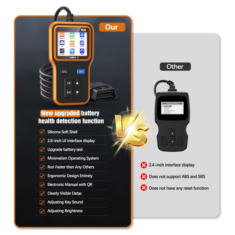 UMEIJA OBD2 Scanner with Upgrade Battery Tester - Diagnostic Tool for Cars That Check Engine Light & Emissions Readiness Read and Clears Vehicle Error Codes for All OBD II Protocol Vehicles Since 1996