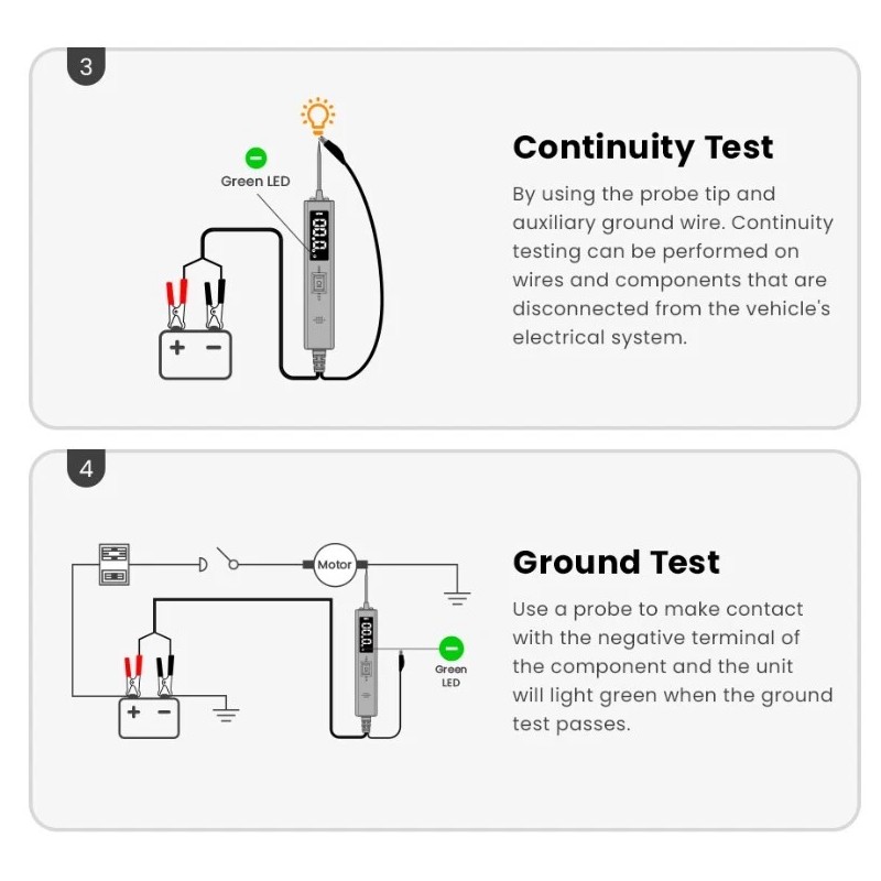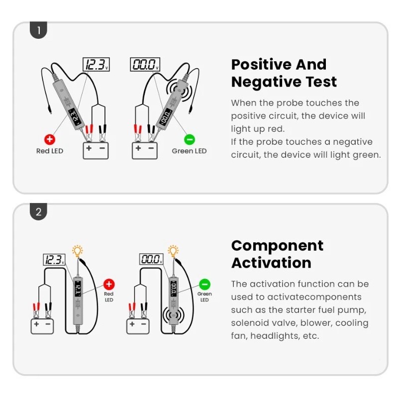 Help you quickly test the working status of switches, relays, diodes, fuses and circuits.