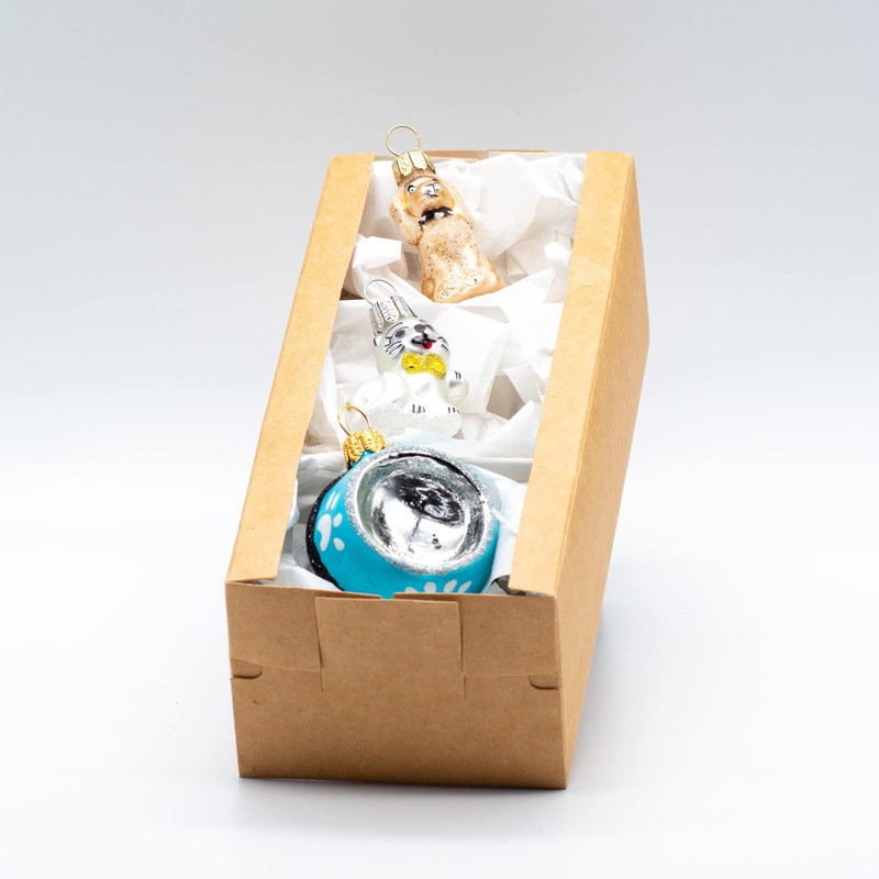 Oberfränkische Glas Christmas Tree Decorations Dog & Cat Mini Set of 3 4 x 4 cm