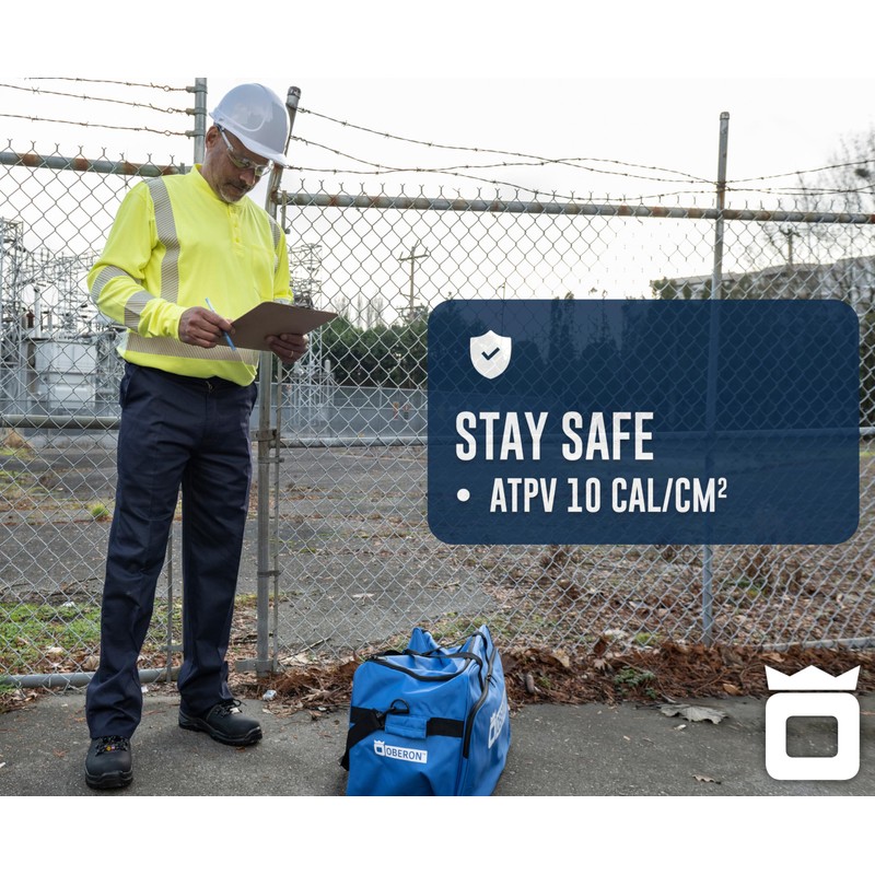 - FR ARC RATED SAFETY PANTS - Oberon Flame Resistant and Arc Rated Navy Work Pants for men is designed to keep electrical workers in utilities, manufacturing, and oil & gas safe whether they're on site or in the office