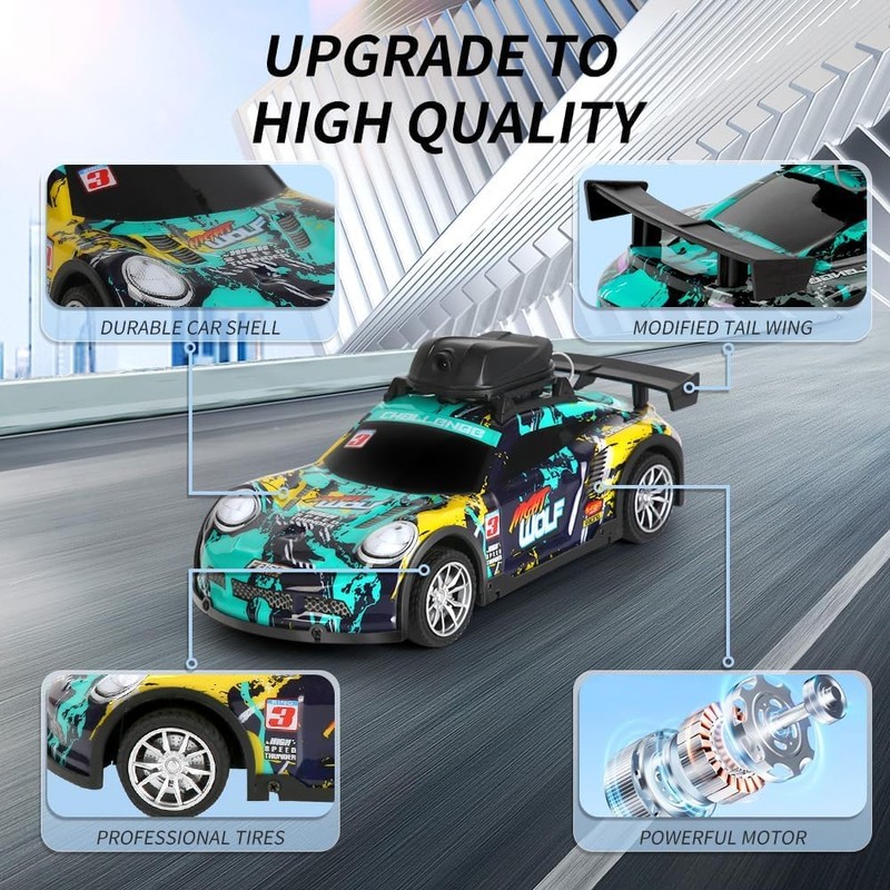 - PERFECT CAR GIFT: This camera car can drive on various surfaces such as road, highway, plain and mud, making it easier to play and have fun both indoors and outdoors. Ideal gift for birthday, christmas and new year