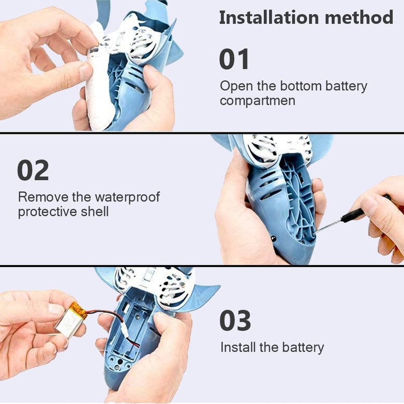 - USB Charging: The toy has a built-in 3.7V 320mA battery and a USB charger cable for easy charging. Note: The shark must first be placed in the water for the remote control to detect and start working. Otherwise, the remote will not be able to control normally.