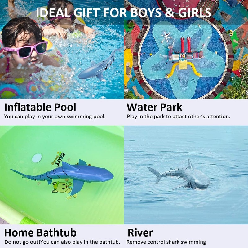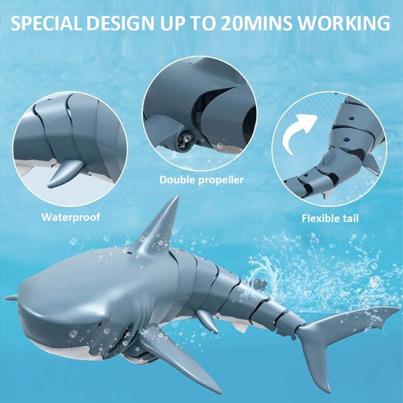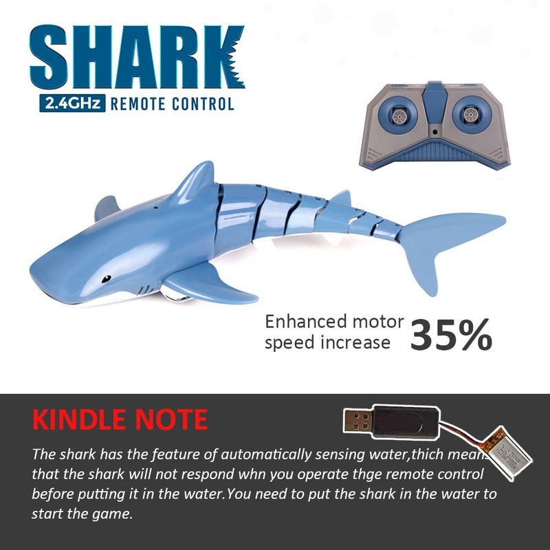 - 2.4GHz Remote Control Frequency: Equipped with 2.4GHz high frequency remote control system, this remote control fish toy is suitable for many people to compete without interference. the remote control shark has the function of sensing water, and the motor will stop running when the shark is removed from the water。