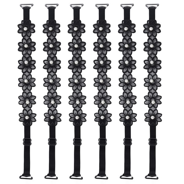 obmwang 3 Pairs Women's Bra Straps Lace Flower Elastic Adjustable Underwear Strap Replacement Shoulder, Black