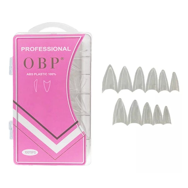 Obp Caja Con 100 Tip Uña Postiza Stiletto Blanca O Transparente