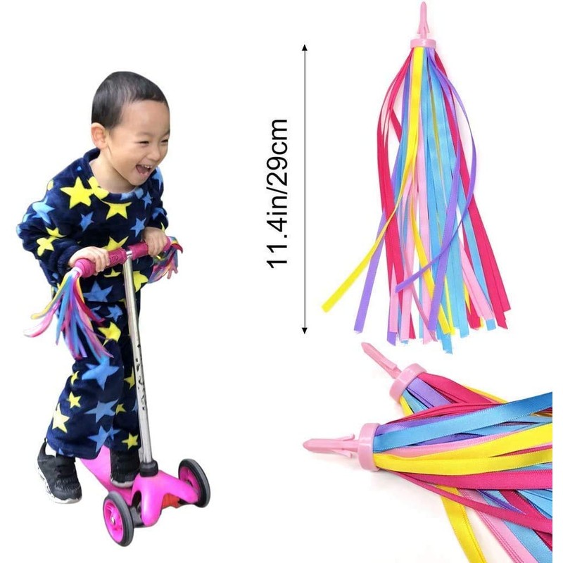 - √ The Rainbow bicycle streamers will wave with the bike or scooter when your girl riding. It is like a smart elf. Make your kids more attractive when riding. Very easy to install, just plug the streamers into the handlebars bikes, scooters or tricycles. Can fit all kind of models