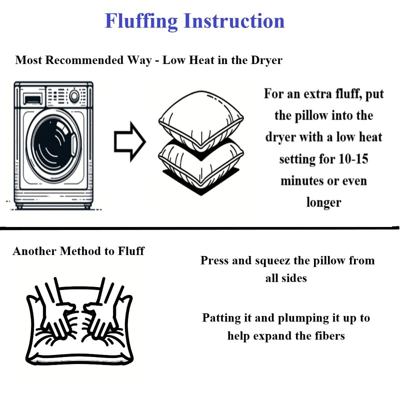 - Product packaging: Pillow inserts are compressed and vacuum sealed into plastic bags, very simple to make them fluff up, please let it wait for around 5-10 minutes, and the inserts will become fluffy and firm