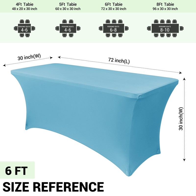 Obstal 6ft Stretch Spandex Table Cover for Standard Folding Tables - Universal Rectangular Fitted Tablecloth Protector for Wedding, Banquet and Party, 72L x 30W x 30H Inches, Light Blue, 2pc
