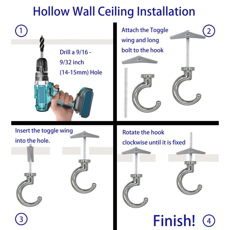 • MATERIAL: The heavy duty ceiling hooks are made of metal, durable and solid,can be used for longer and maintenance free operation.