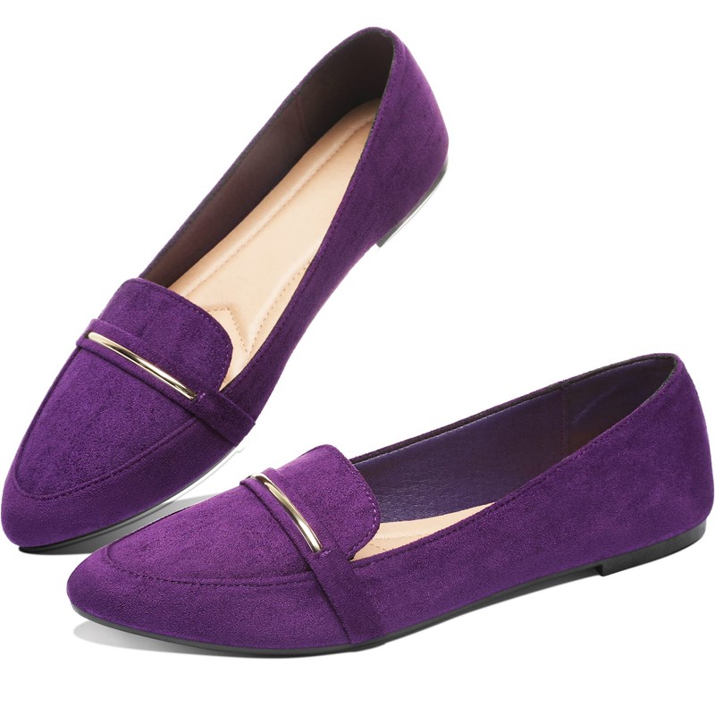 Obtaom Women's Pointy Toe Loafer Flat Comfortable Faux Suede Work Shoes,Cute Penny Loafer Slip On Ballet Flat(Purple US5)