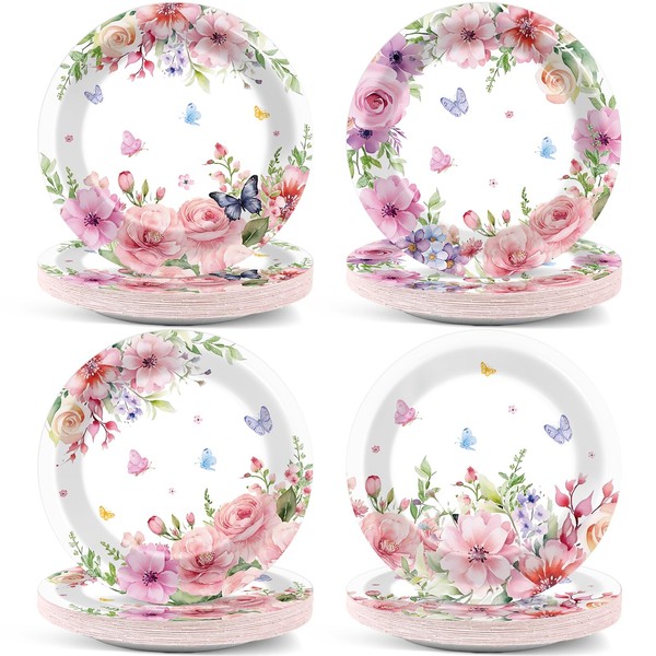 - Floral Butterfly Paper Plates Set: This set features 100 pink spring dinner flower plates in four unique designs, with 25 plates per style. The generous quantity provides plenty for any themed party or celebration. With a variety of patterns to choose from, these plates effortlessly complement your party theme, making them a versatile addition to any event.