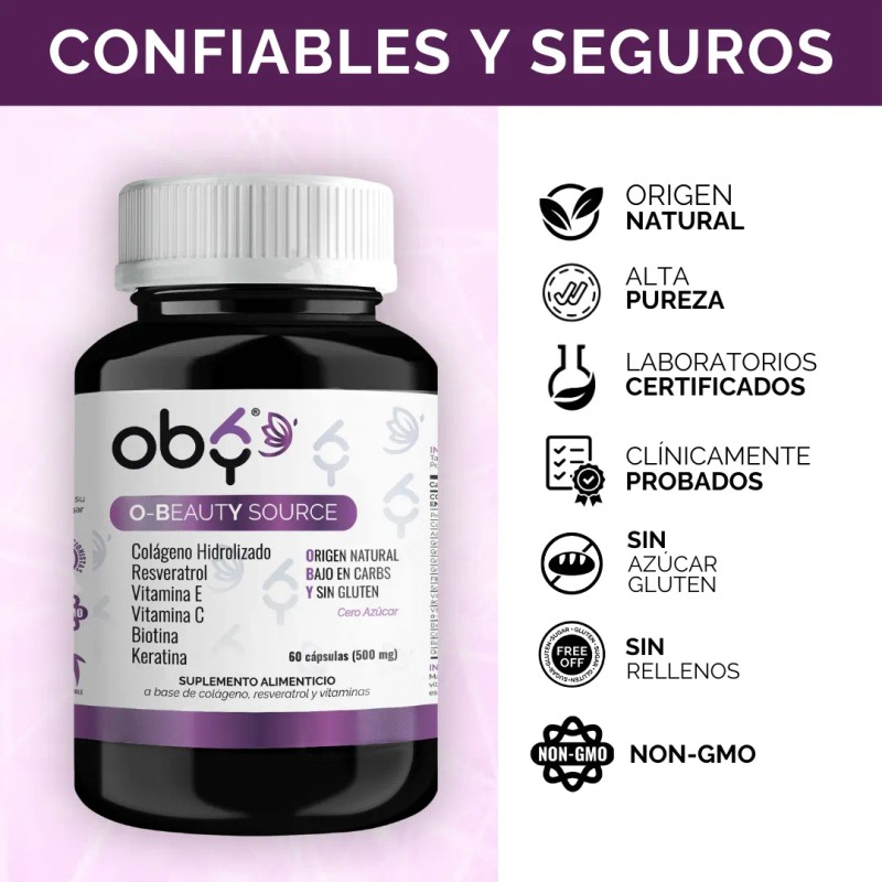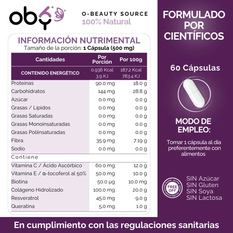 🌟 ⭐ Oby Colageno Hidrolizado con Resveratrol, Biotina, Keratina y Vitamina E y Vitamina C | Suplemento Antioxidante Vitybell para Piel, Cabello y Uñas | 60 Cápsulas Premium | Vitaminas Mujer y Hombre ⭐ 🌟